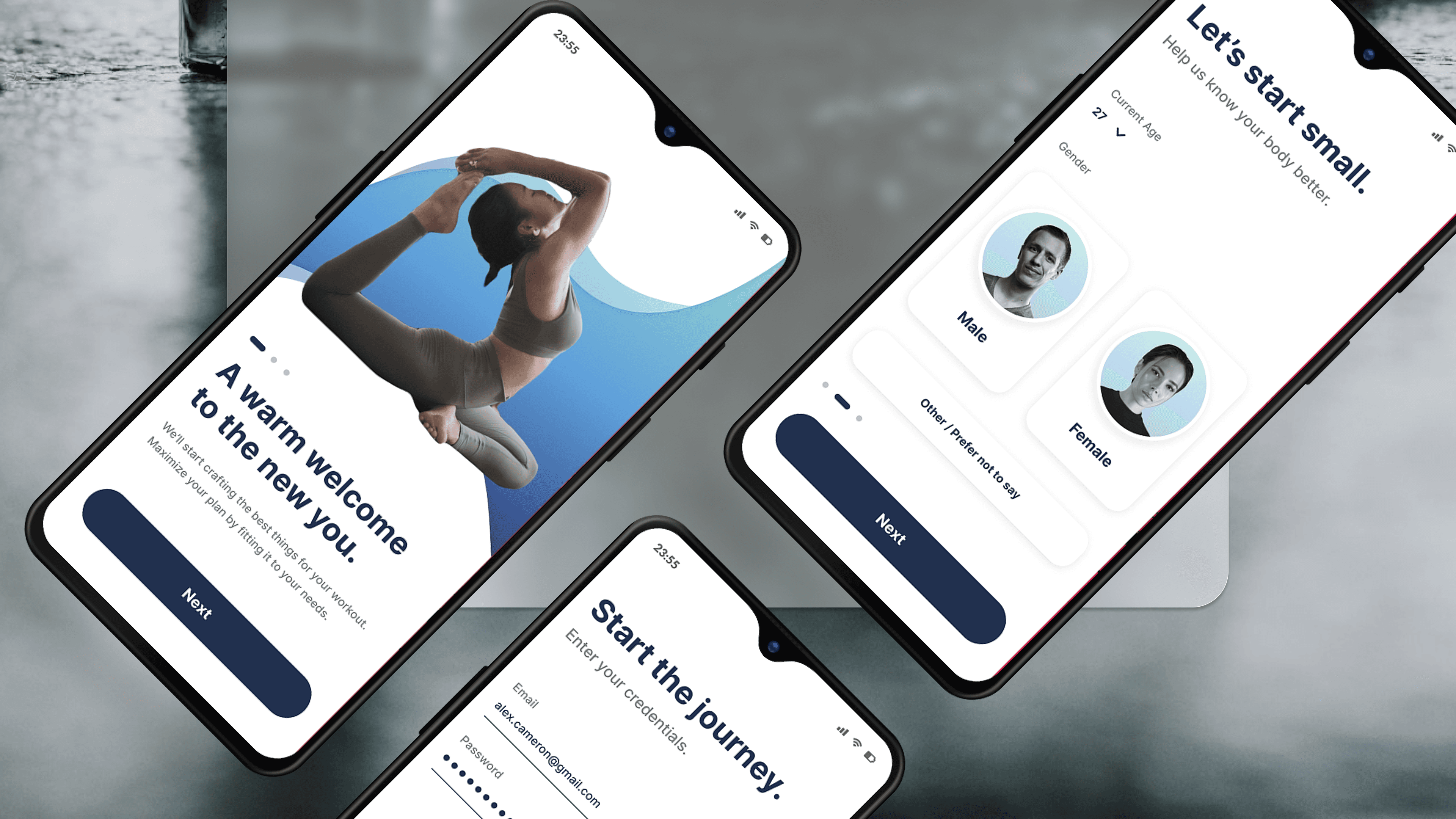 With the problem defined, I sketched Fitable’s core flows around two pillars: consistency and clarity. I wanted the visuals to speak with comfort, so that users would not feel bored with the monotony of it through regular use. The whole vibe should feel structured / organized, but it should still feel humane enough in its design.