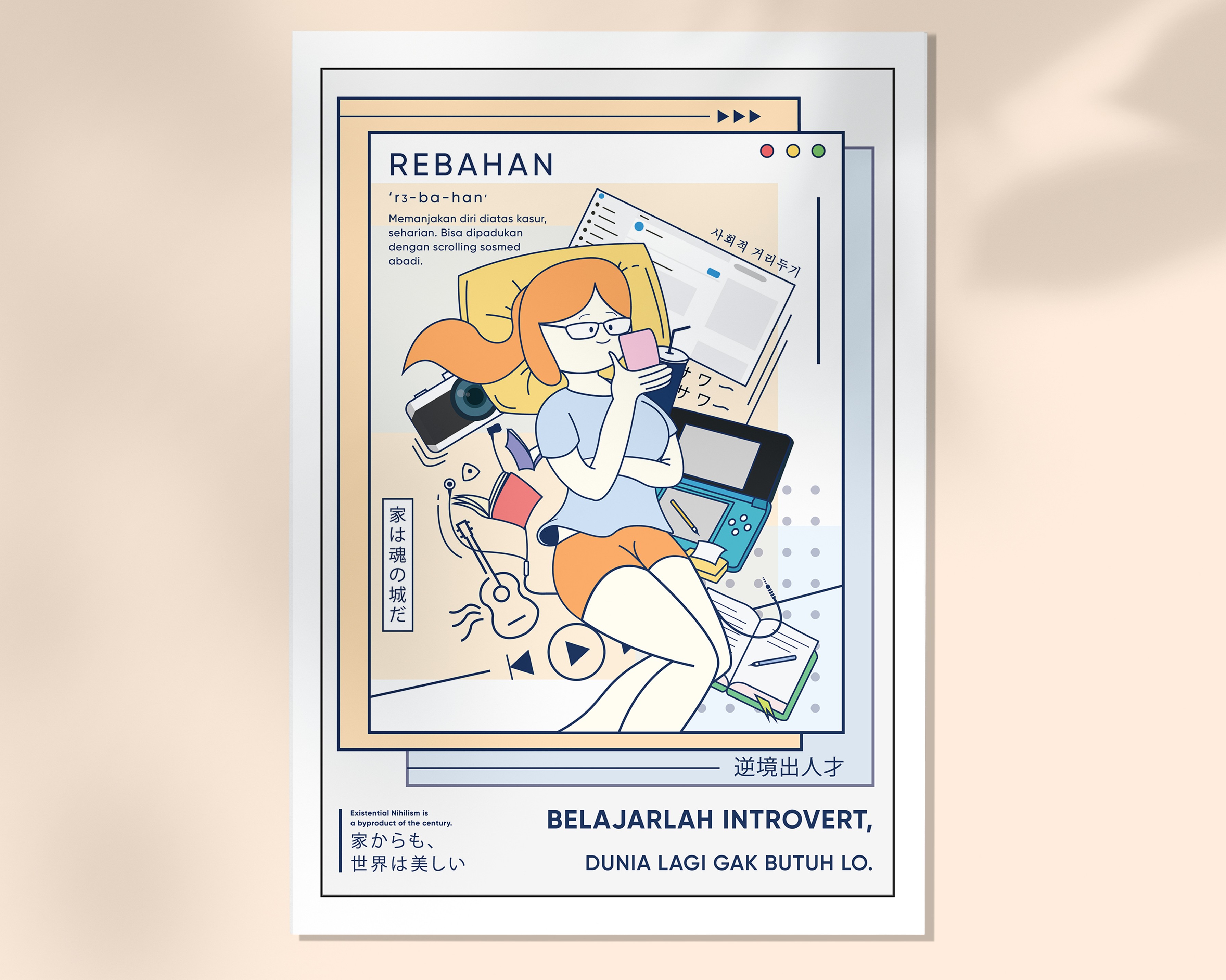 An illustration made with solely vector tools within Adobe Illustrator. Depicts a scenery of Sodegaura, a town with a seaside road in Chiba, Japan. This specific stretch of bayside highway in it is colloquially refered to as "Chiba-fornia" due to its resemblance to Southern California roads.